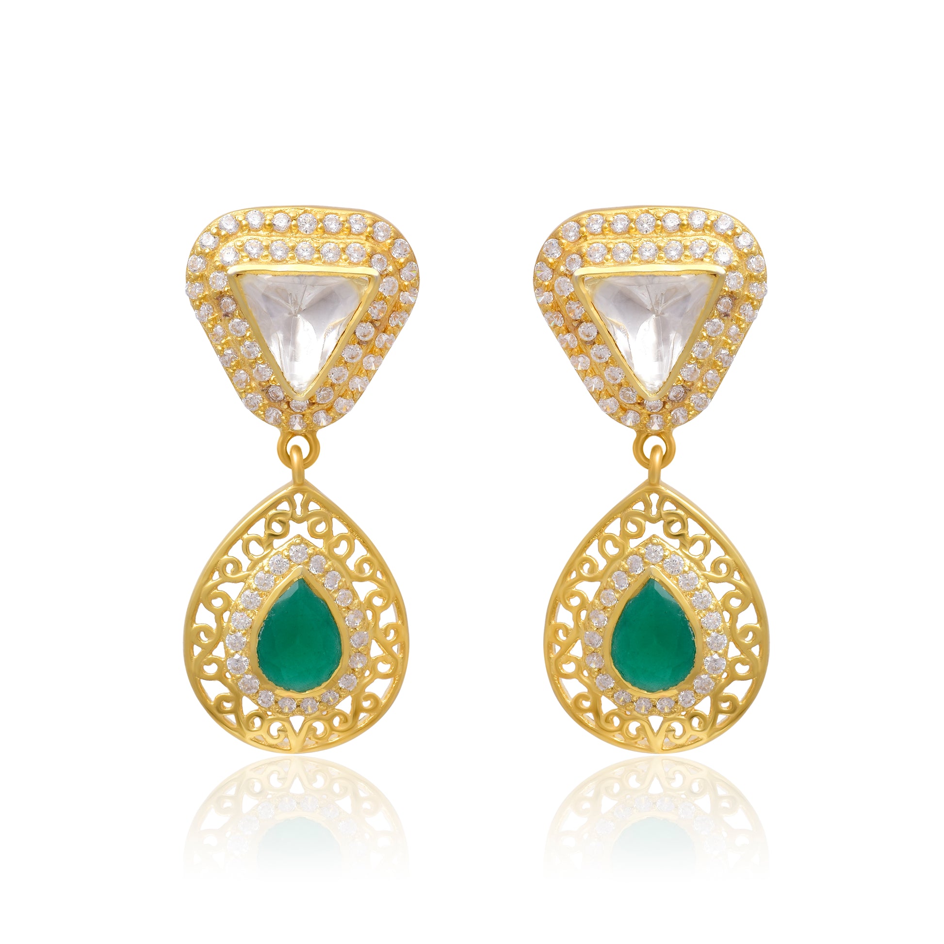 Moissanite Polki Jaali Work Earrings