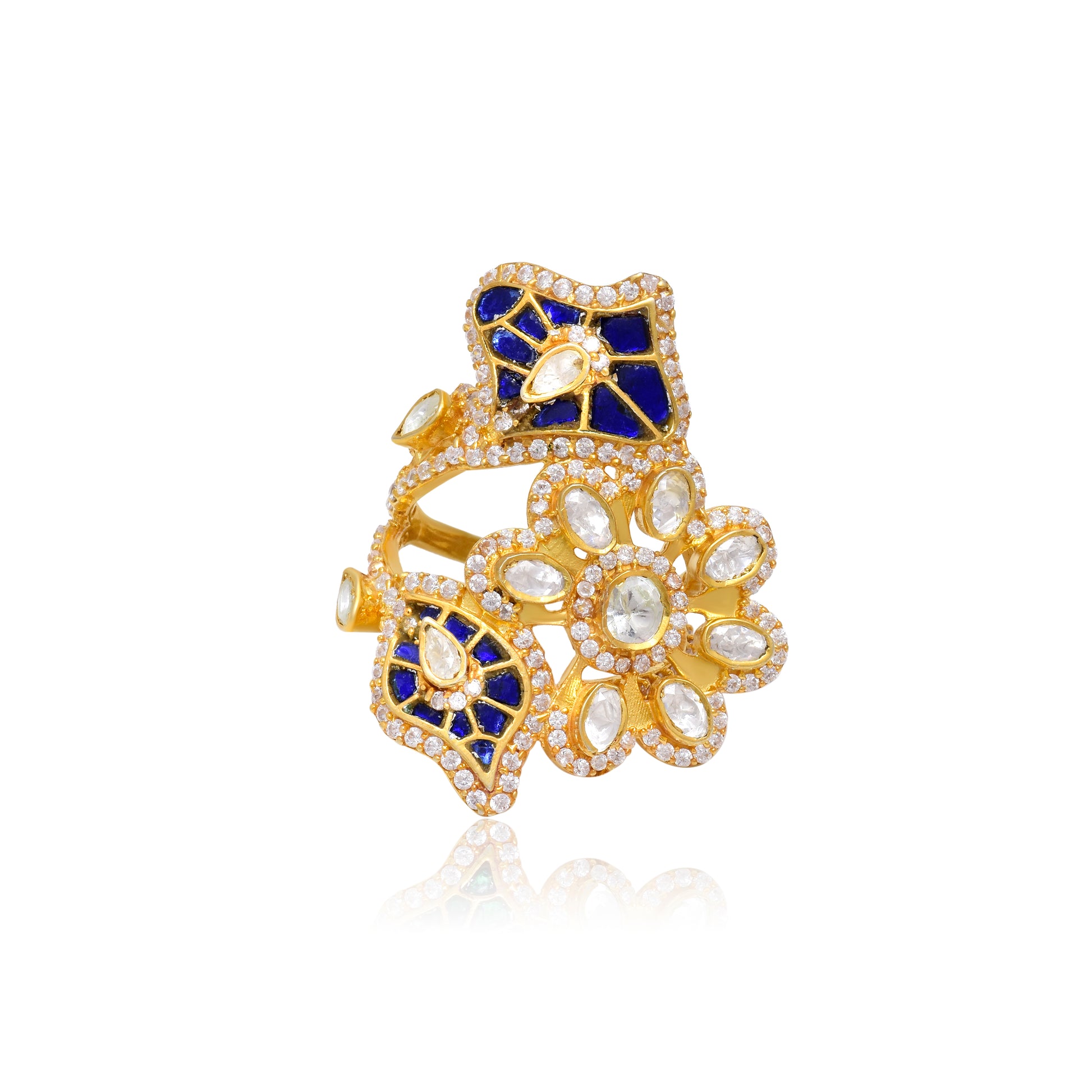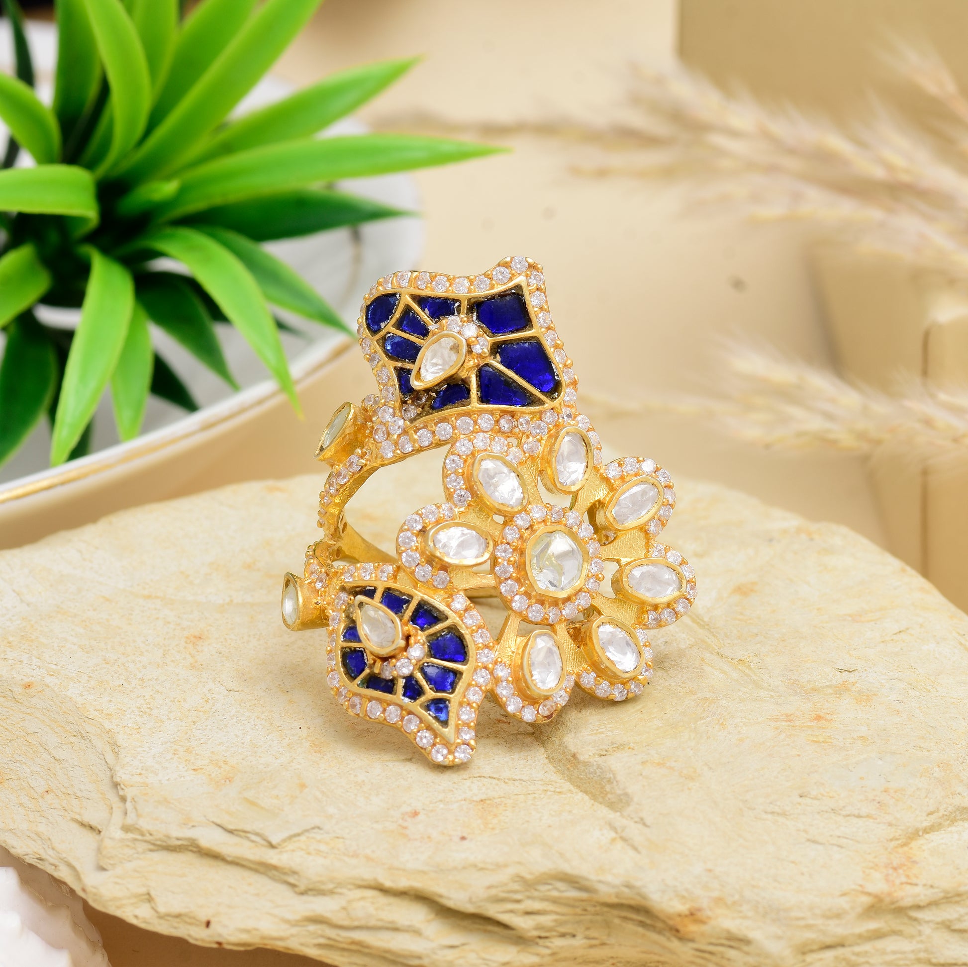 Moissanite Polki Leaf Ring