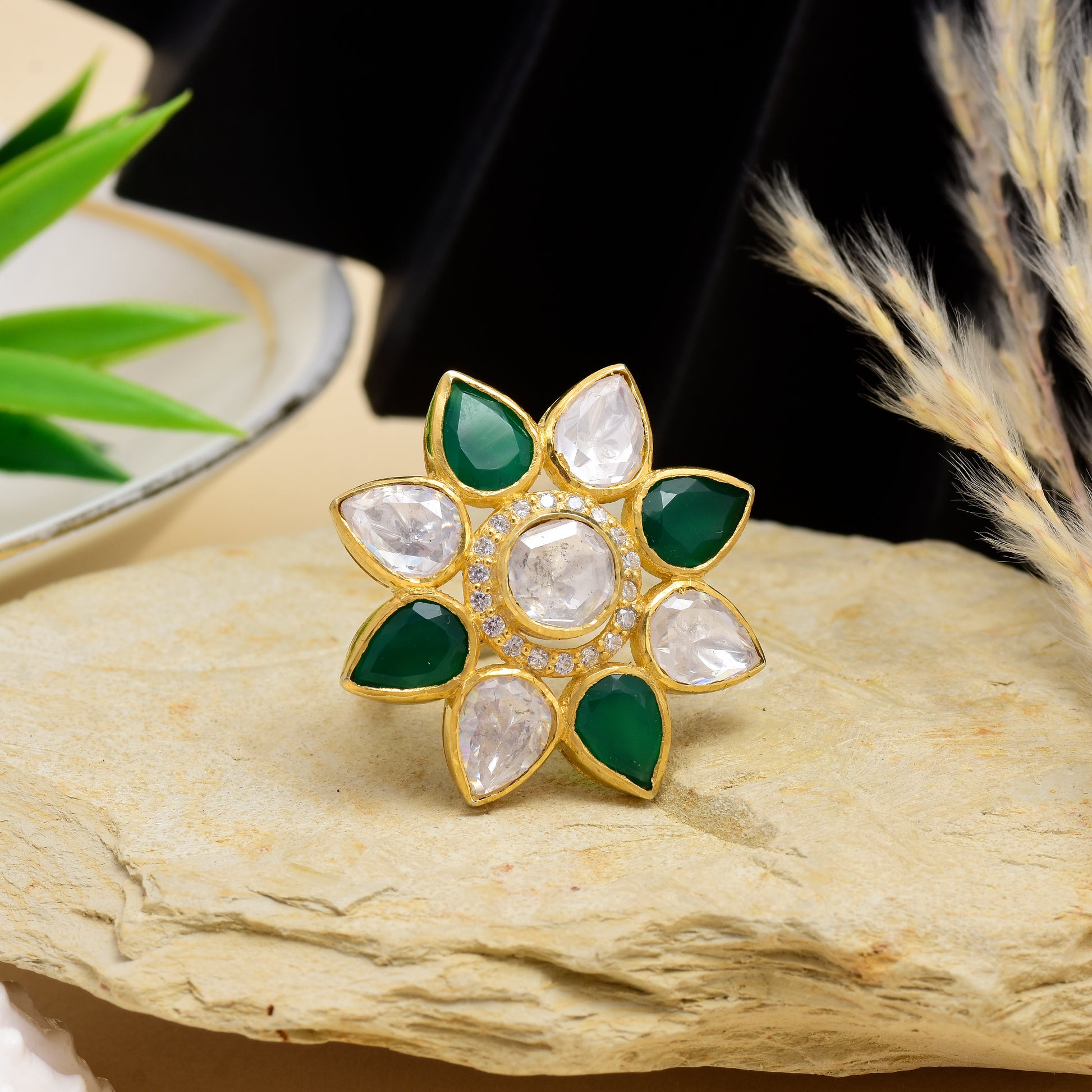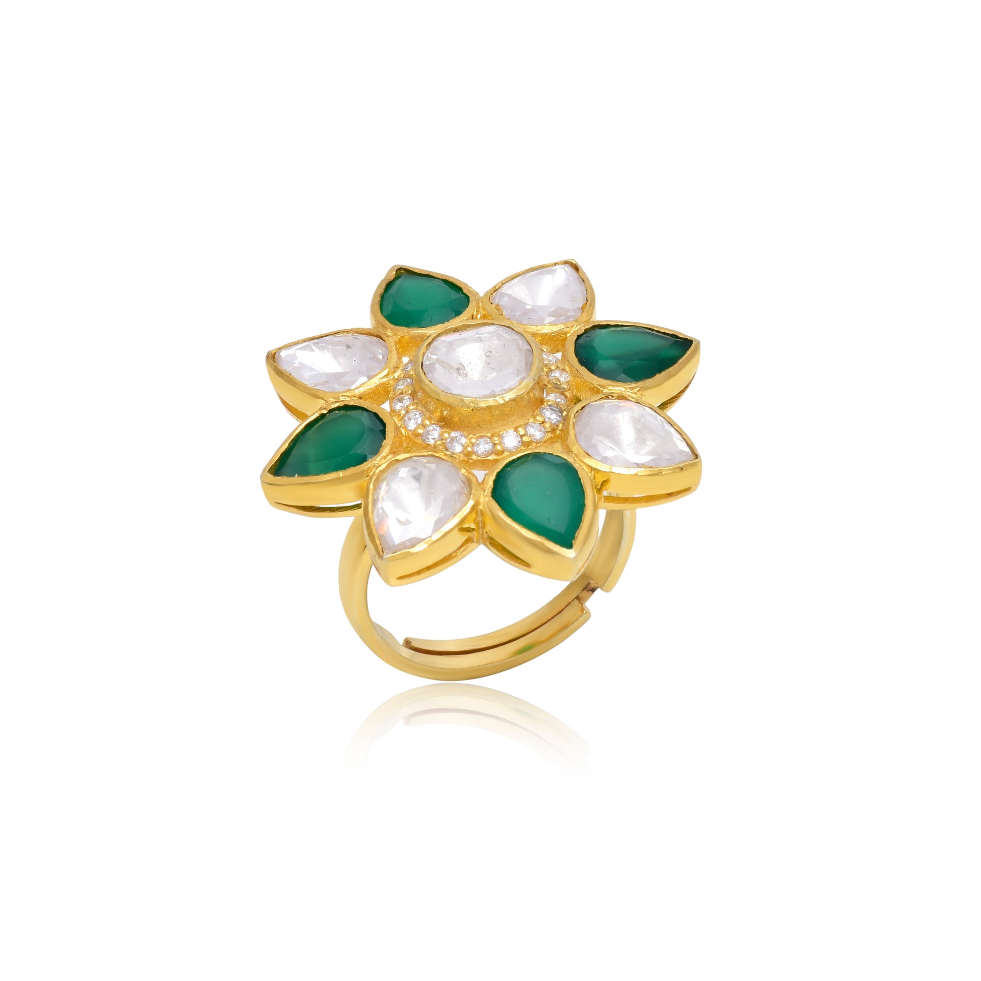 Moissanite Polki Traditional Green Ring