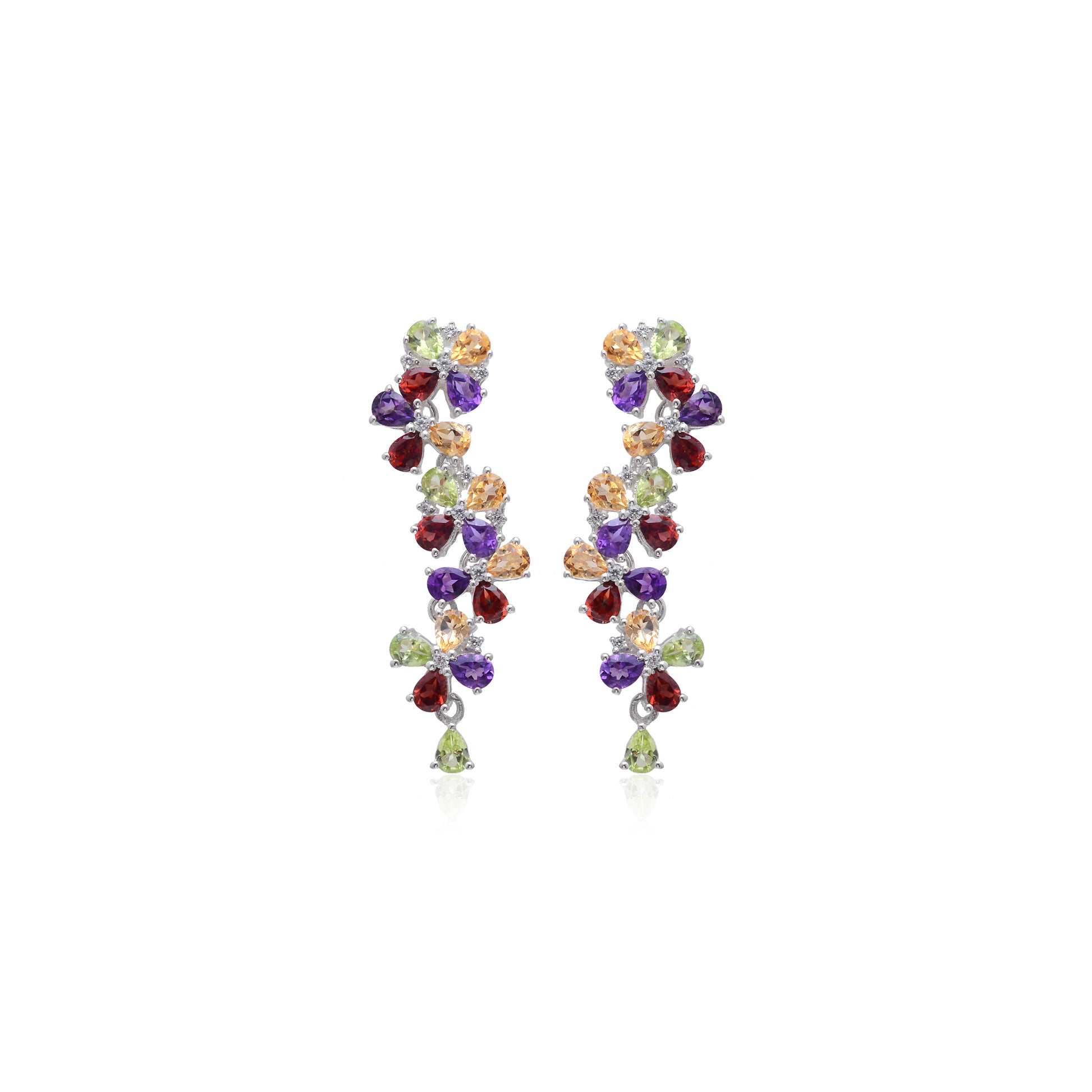 These Multicolor Floral Earrings are crafted from sterling silver and finished with a white rhodium coating to ensure lasting shine and resistance to tarnish. Designed as an exclusive piece, they bring vibrant colors and delicate floral motifs together, making them an ideal accessory for party wear. Their expert craftsmanship guarantees both elegance and durability, enhancing your ensemble with a refined yet lively touch.