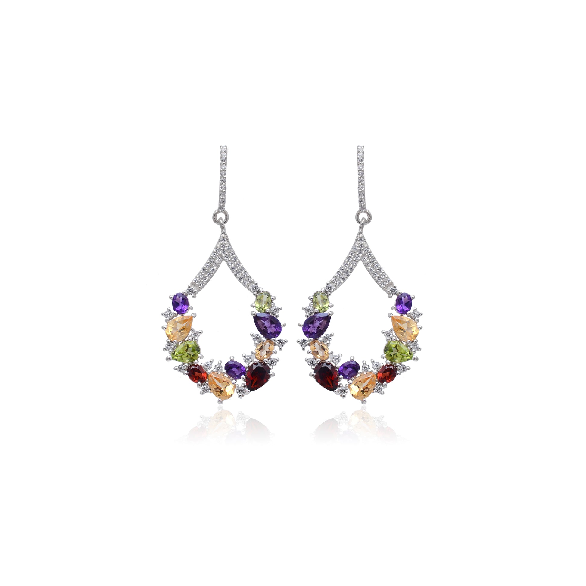 Elevate your style with these Multicolour Earrings, crafted from natural semi-precious stones set in white rhodium for a brilliant, tarnish-resistant finish. Designed for luxury and durability, they add a vibrant touch to any party ensemble while ensuring long-lasting shine and elegance. Perfect for those seeking expert-quality accessories that combine beauty with resilience.