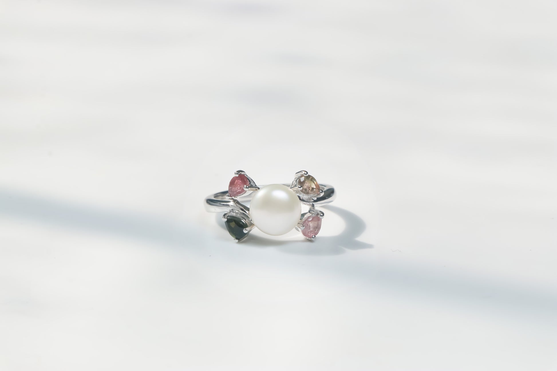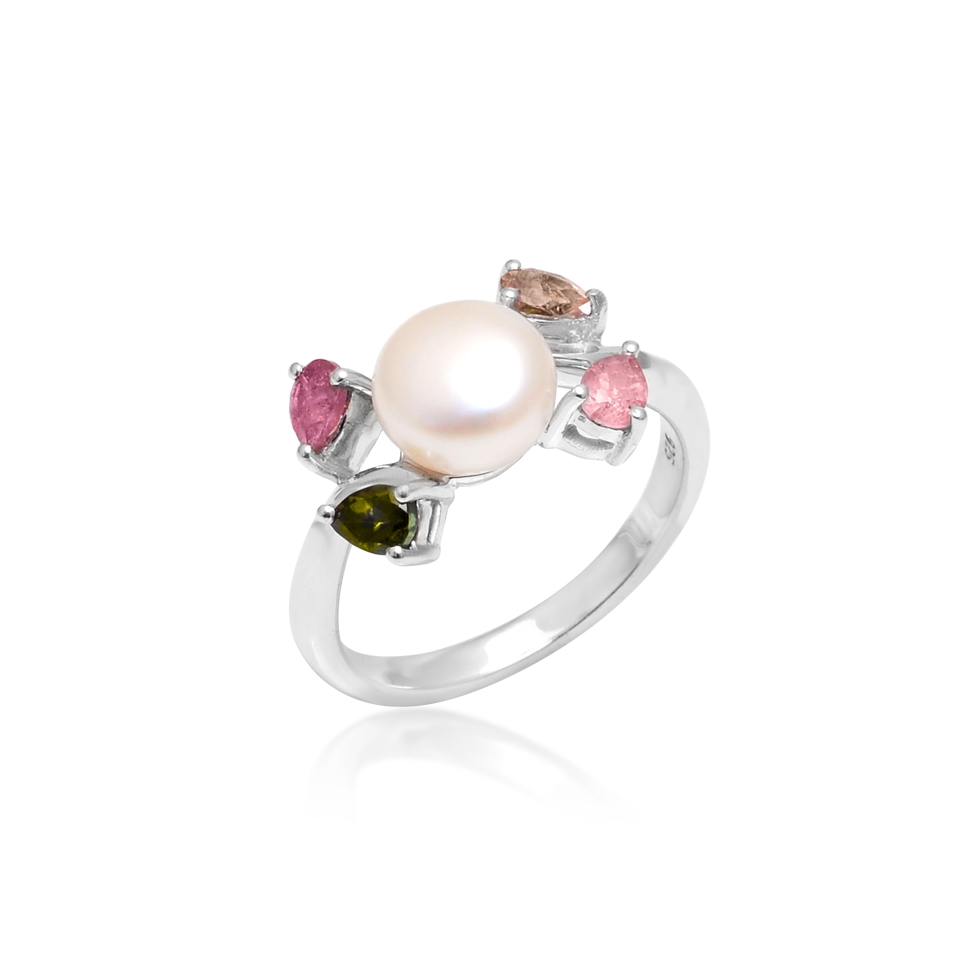 Elevate your collection with the Pearl Multi Tourmaline Ring, expertly crafted with natural gemstones set in white rhodium for lasting brilliance. This unique piece combines the timeless elegance of pearls with the vibrant hues of multi-colored tourmalines, enhanced by an anti-tarnish finish to preserve its pristine look. Ideal for those who appreciate refined craftsmanship and enduring beauty in their jewelry.